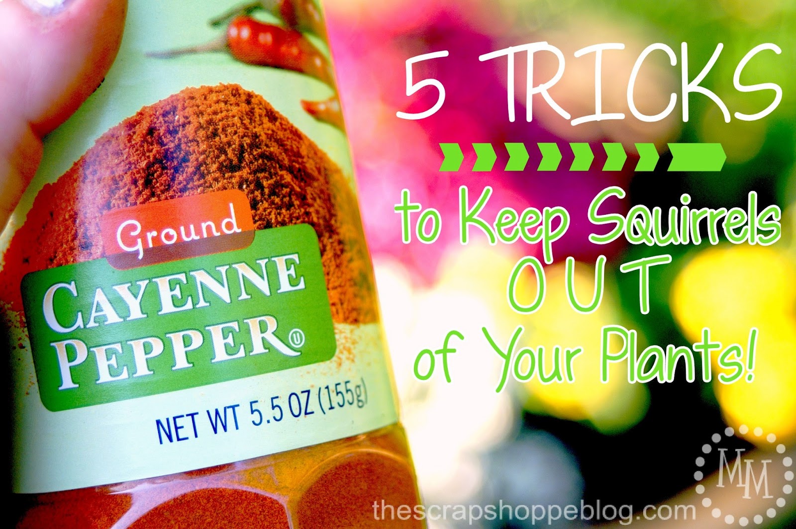 Today I’m going to share 5 tricks I’ve picked up in the last few years of gardening to help keep squirrels out of your plants. These work best with container gardening, which is what I mostly do on our back patio, but several of these can be applied directly to your bed gardens.