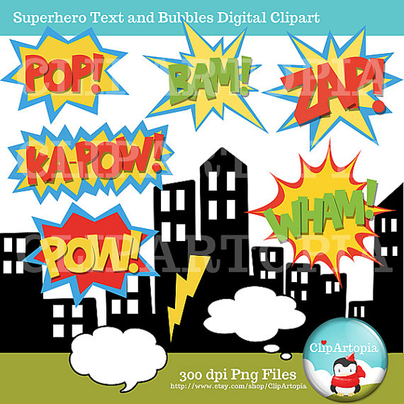 Superhero Text & Bubbles Clipart