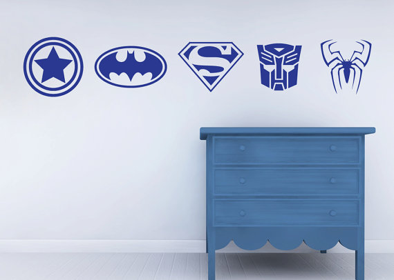 Superhero logo art is a little more subtle, maybe for an older child.
