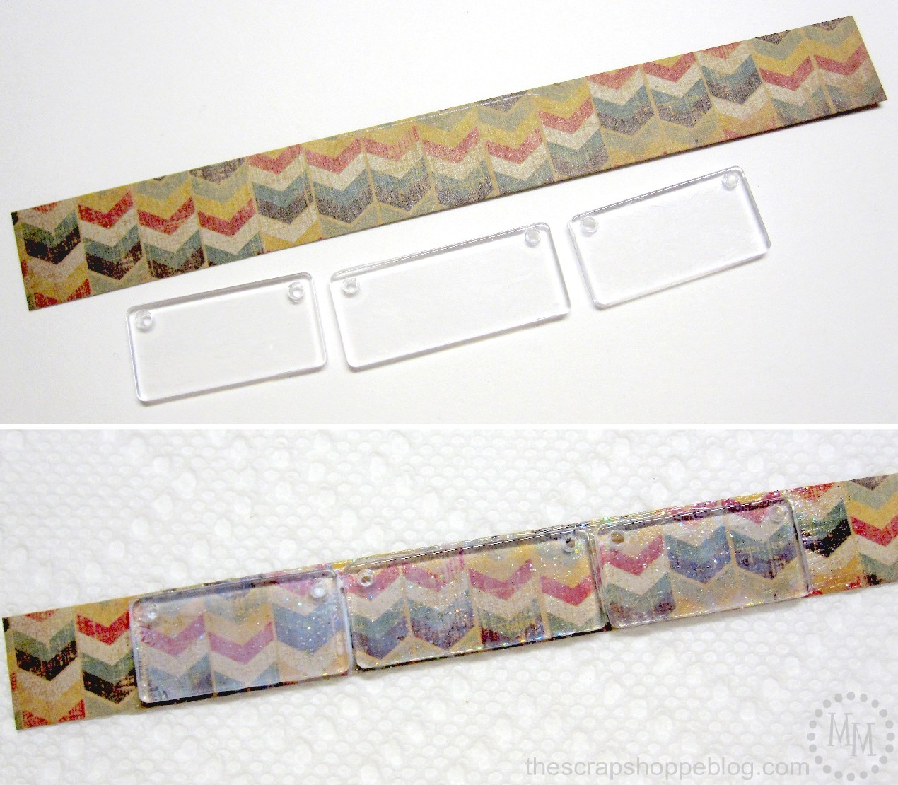 Cut and trim the paper down to size around the 3 acrylic pieces.