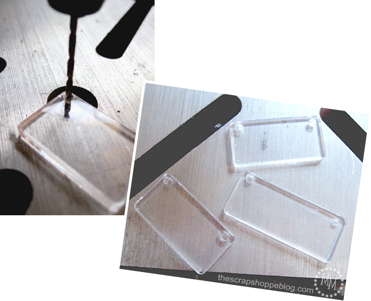 I drilled a small hole, just big enough to fit a jump ring through, in two of the corners of each acrylic piece.