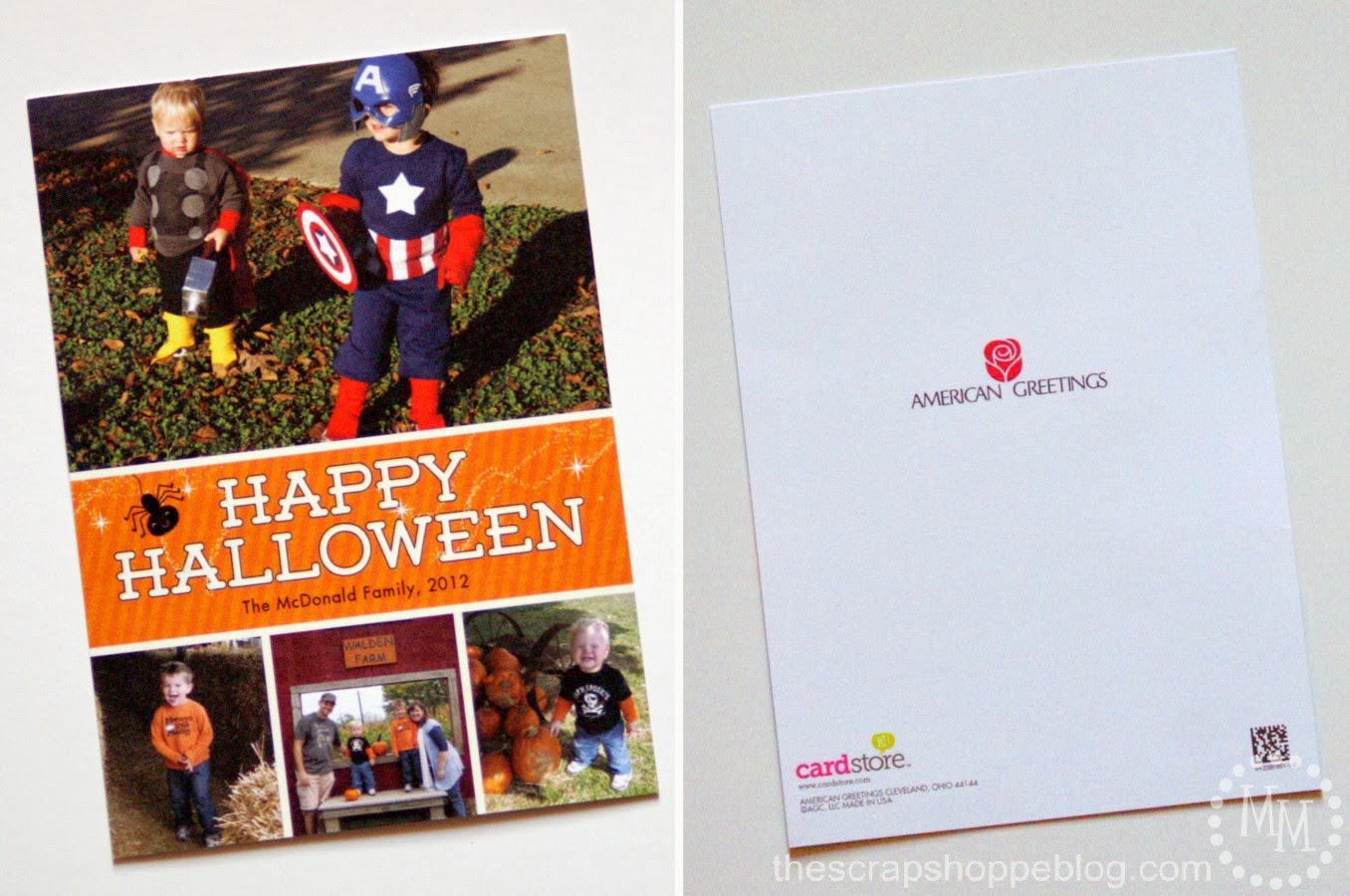 I decided to go with Halloween. I finally settled on a 5 x 7 photo card that I could add 4 photos to. I chose photos from last year’s Halloween festivities. Uploading and adding them to the card was super simple. You can even resize and make the photo black and white if you choose!