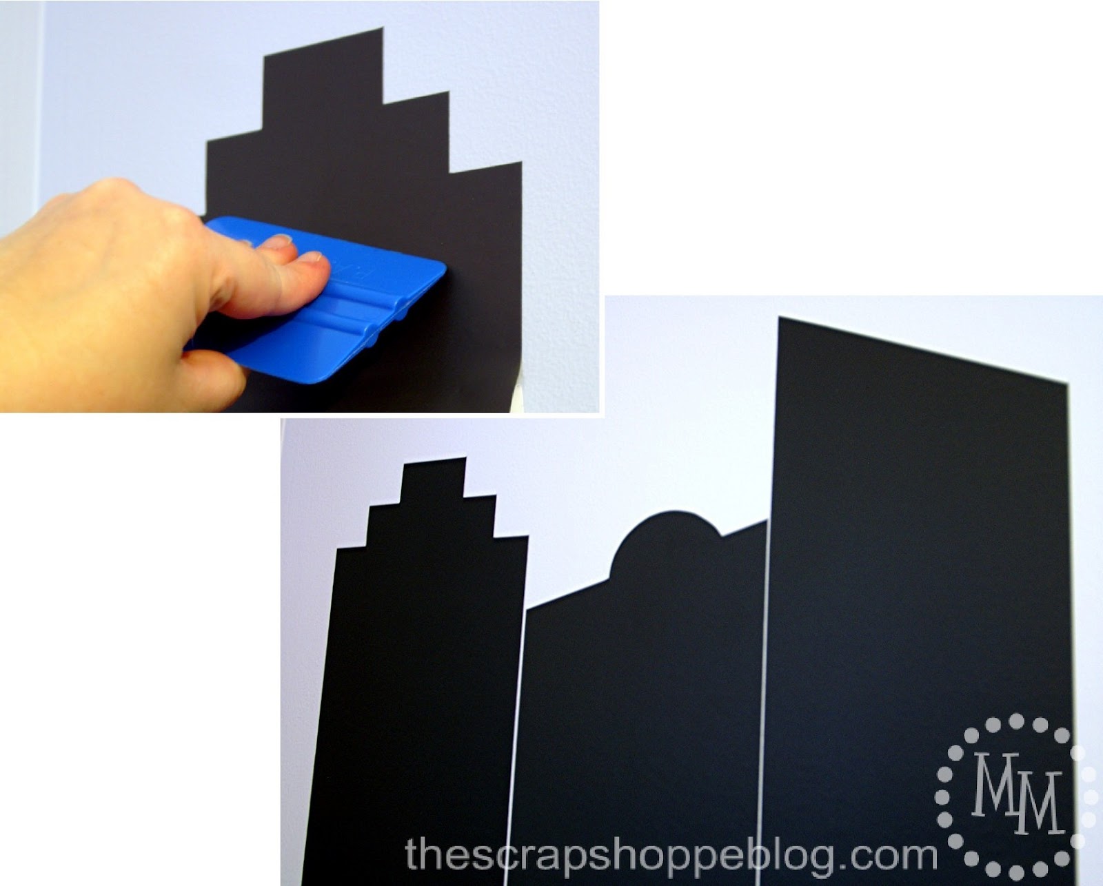 You’ll need 6 sheets of 12×24″ chalkboard vinyl (affiliate link) to create the skyline.