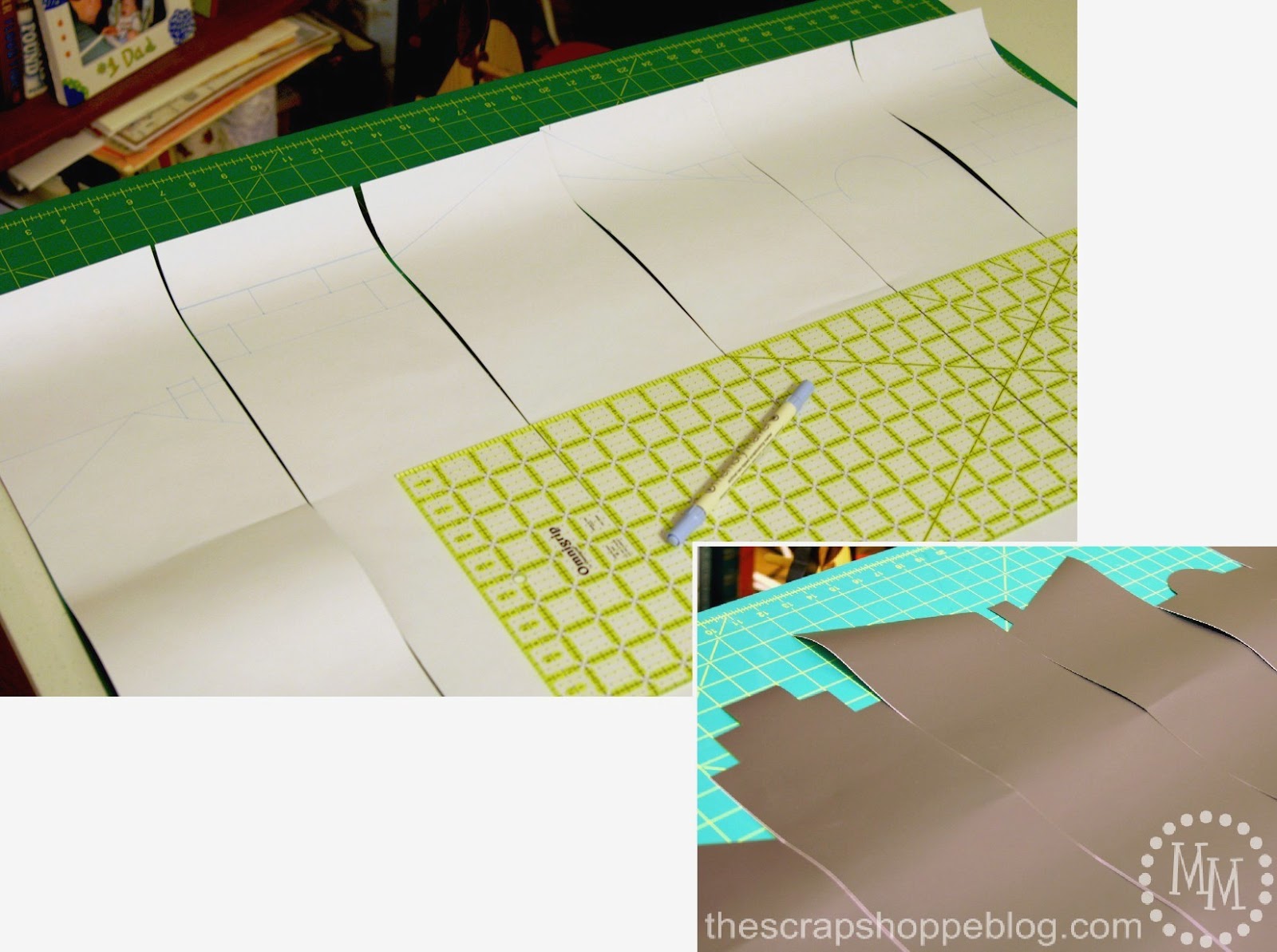 The first thing I did was cut all of the vinyl in half lengthwise so instead of 6 12×24″ sheets, I now had 12 6×24″ sheets!