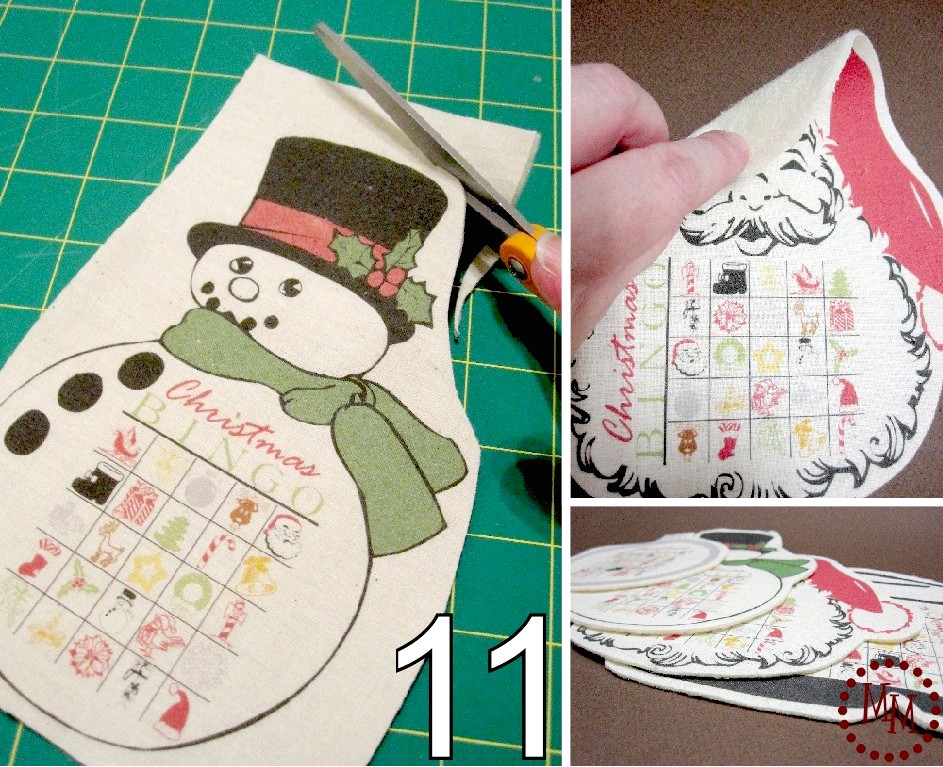 9. Take some fusible webbing and attach the sticky side to the back of your bingo sheets.