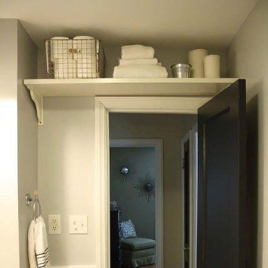 You can easily put up a shelf to store extra towels, toilet paper, and other more.