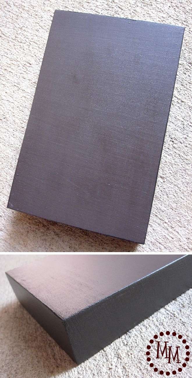 I mixed some brown, black, and dark green acrylic paint to make a grayish brown color and painted the wood block. With the primer, it only took 2 coats of paint for good coverage.
