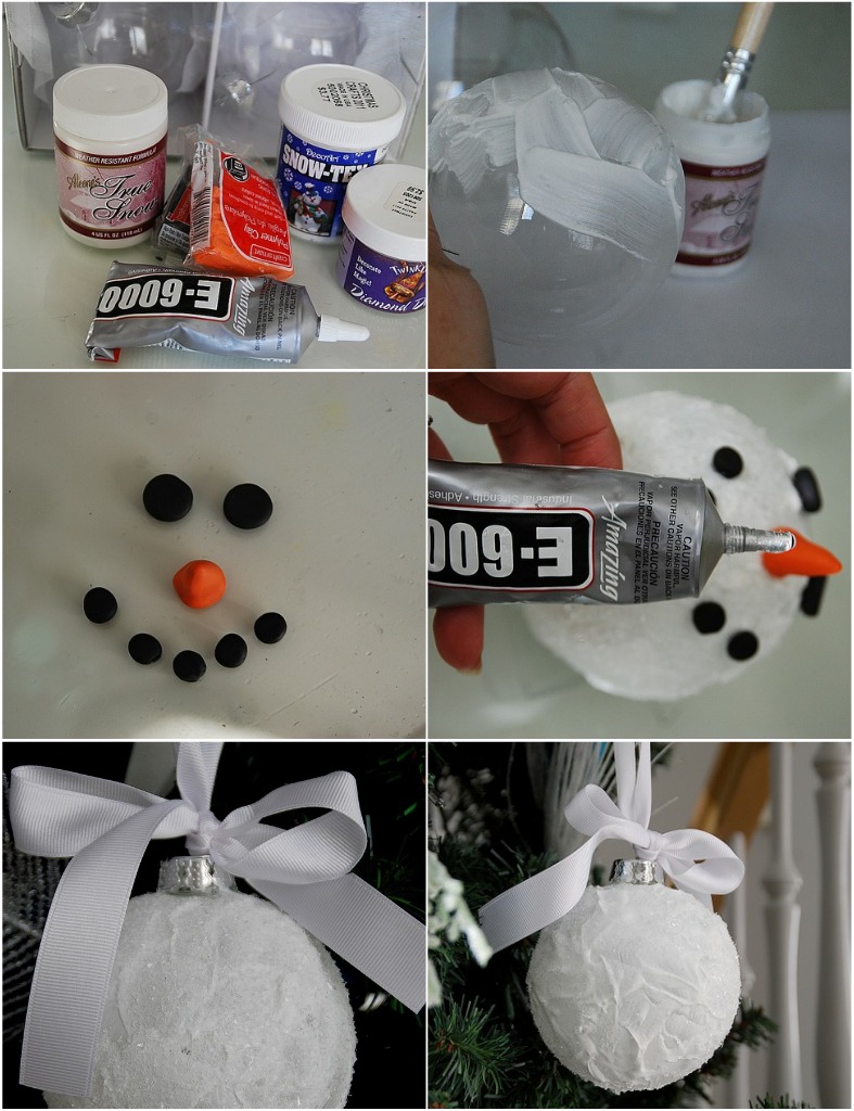 And by adding a little polymer clay you can turn your Snow Ball ornament into a Snowman ornament.
