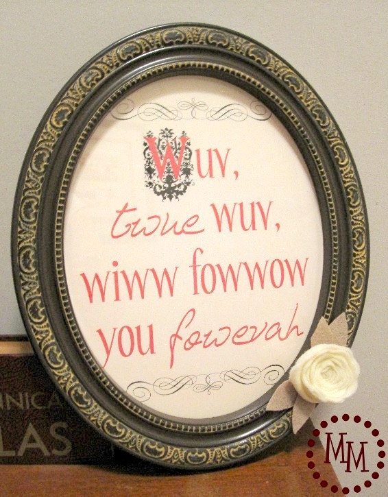 Back in late January I shared this fun lovey dovey quote printable from The Princess Bride.