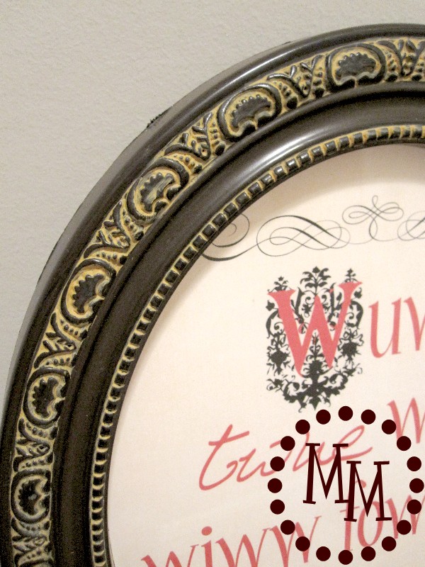 I love the detail work on this frame I found at Joann’s, but it just didn’t stand out which, quite frankly, made it all a little dull. So I decided to spruce it up with a little paint!