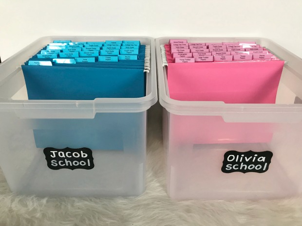 Having children in school also means a mound of papers that they bring home from tests to report cards to art work and what exactly do you do with it all? Here is a great filing system to get all of those paper organized and to make it easy for your child to look back at their hard work each year.