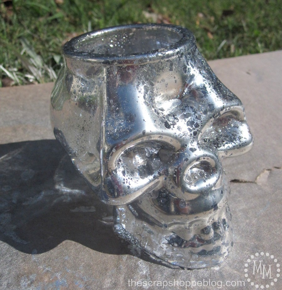 After seeing Jenn’s faux mercury glass dominoes, I was convinced to go in the same direction with this skull!
