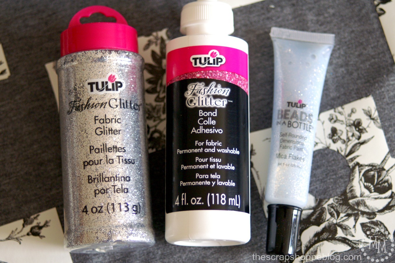I used 3 of the Tulip products for this project: Fashion Glitter, Fashion Glitter Bond, and Beads in a Bottle.