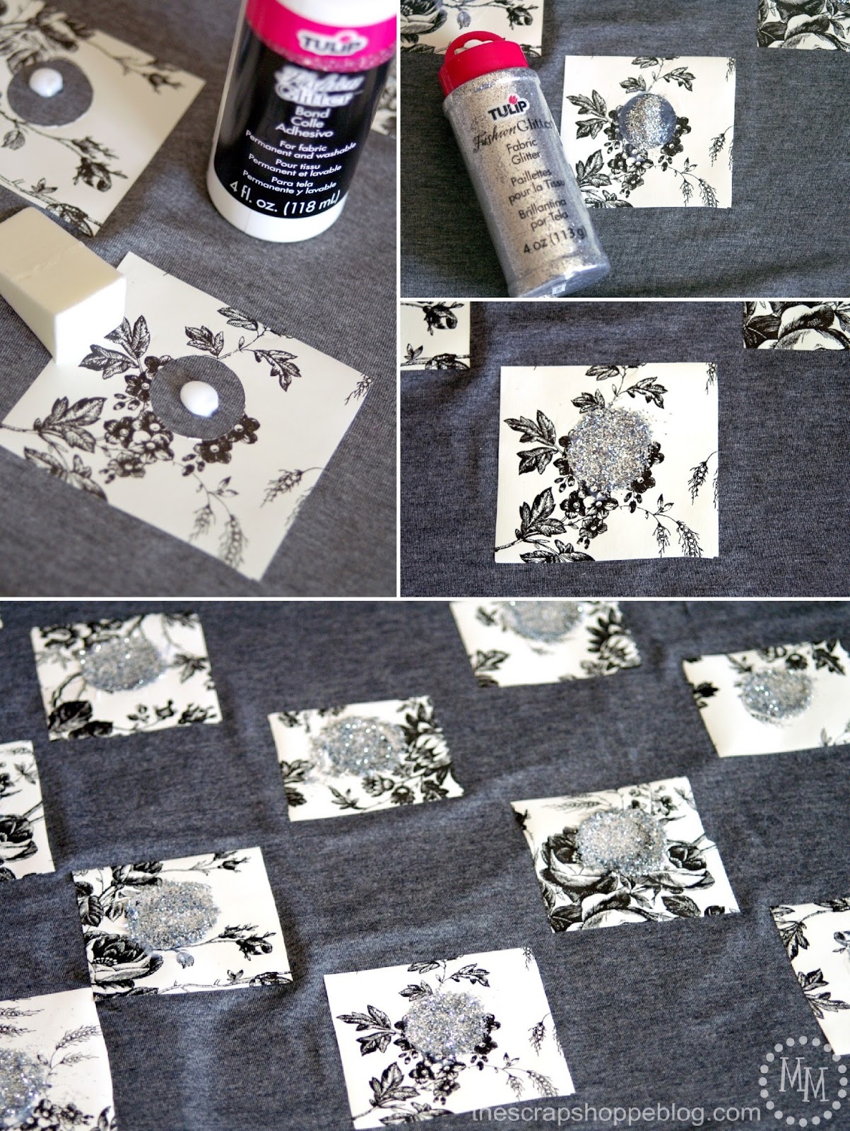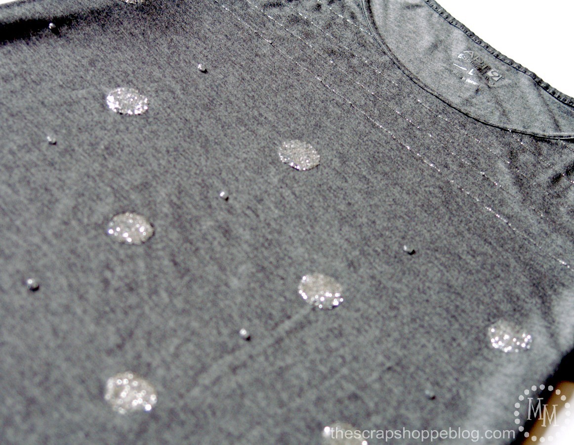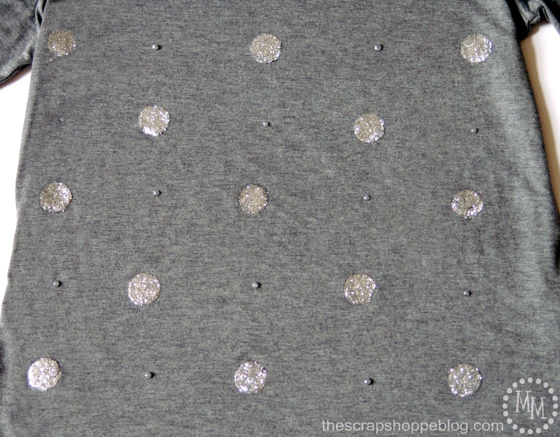 Because of the dark gray color of the shirt, I stuck with silver for both glitters.
