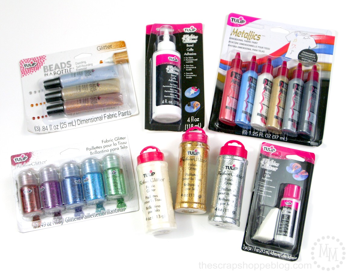 We are talking Beads in a Bottle, Fabric Glitter, Fashion Glitter, Metallic paint, and Fashion Glitter Bond.