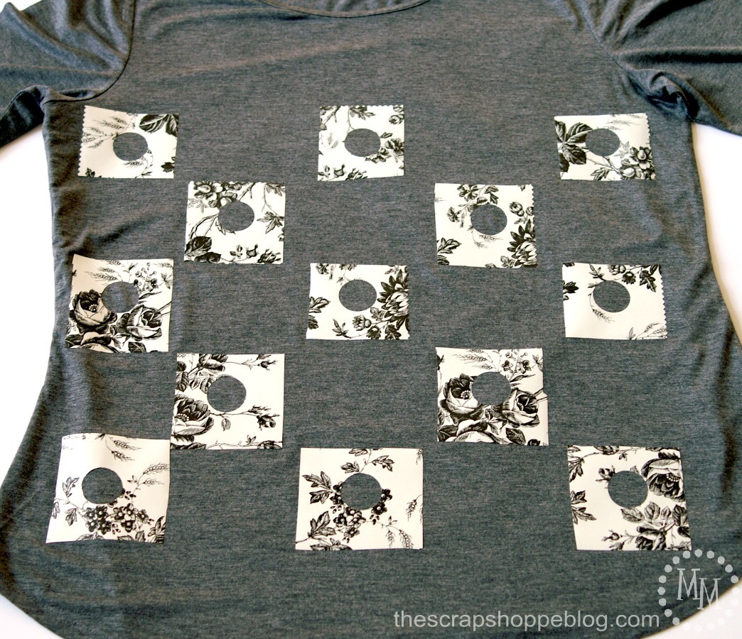 I removed the backing to the contact paper and placed the pieces on the shirt to act as a stencil.