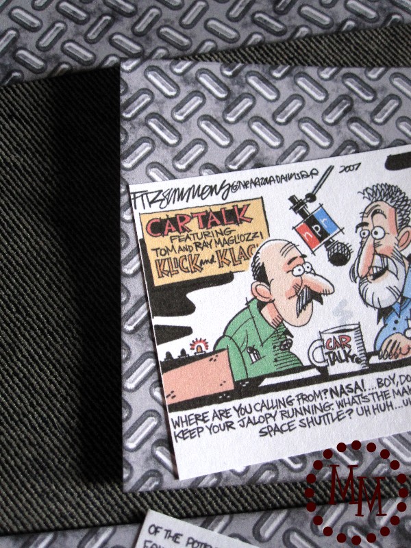 I asked the hubs what he wanted for Father’s Day this year, and he promptly informed me he had emailed me some Car Talk comic strips that he would like put into frames. The hubs loves Car Talk so I defnitely needed to make this work! And it was going into the “man cave” a.k.a. the detached garage so it also needed to work well in there.