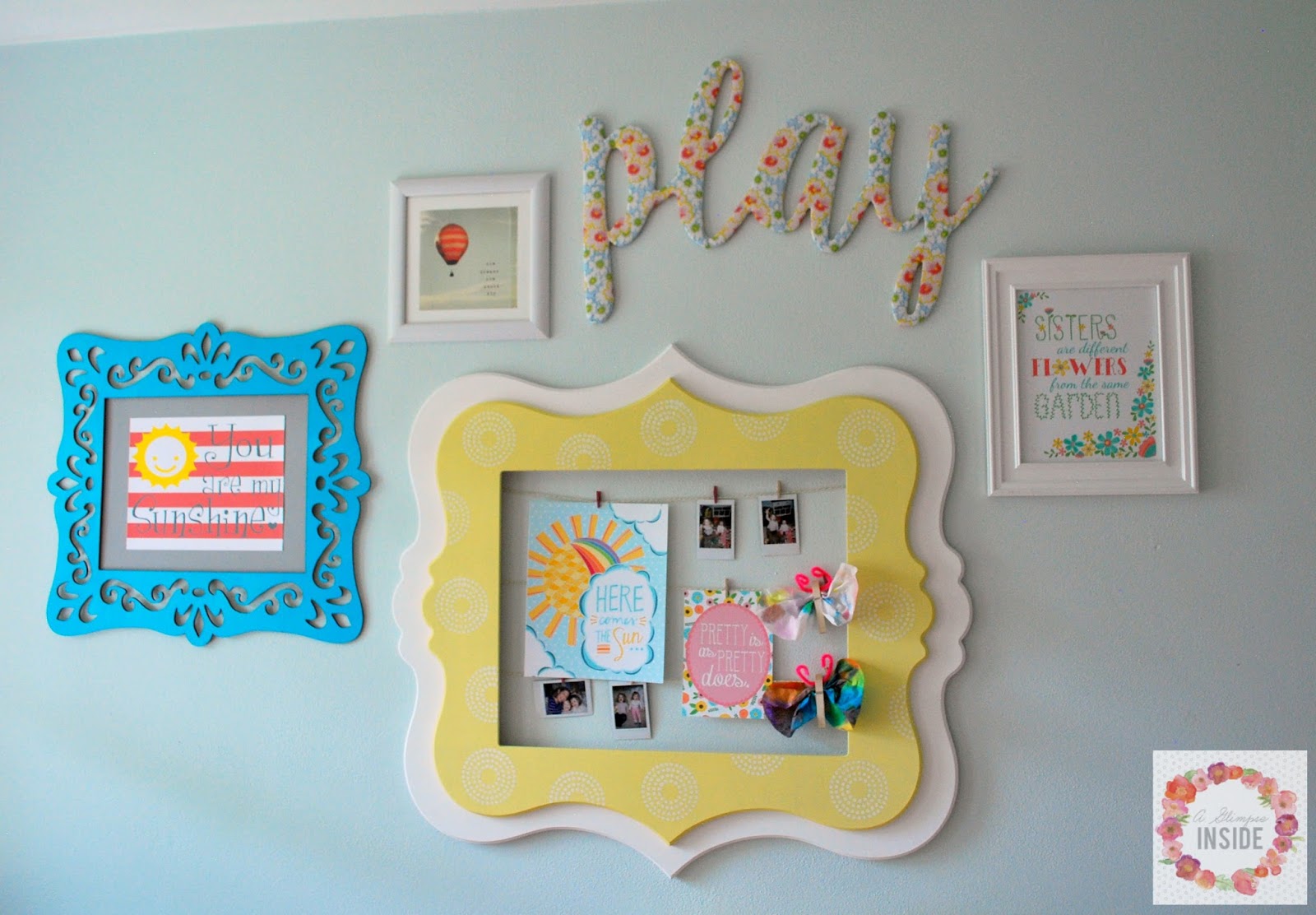 I created this fabric covered play and yep, up on the wall with a few hanging strips.