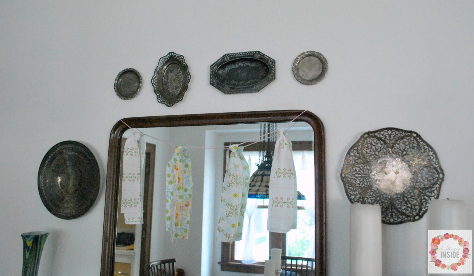 In my dining room I have these metal plates that I, yet again, hung with the hanging strips.