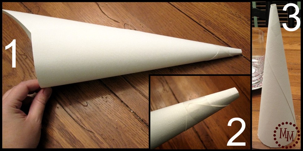10. Adhere the end of the ribbon to the bottom inside of the cone.