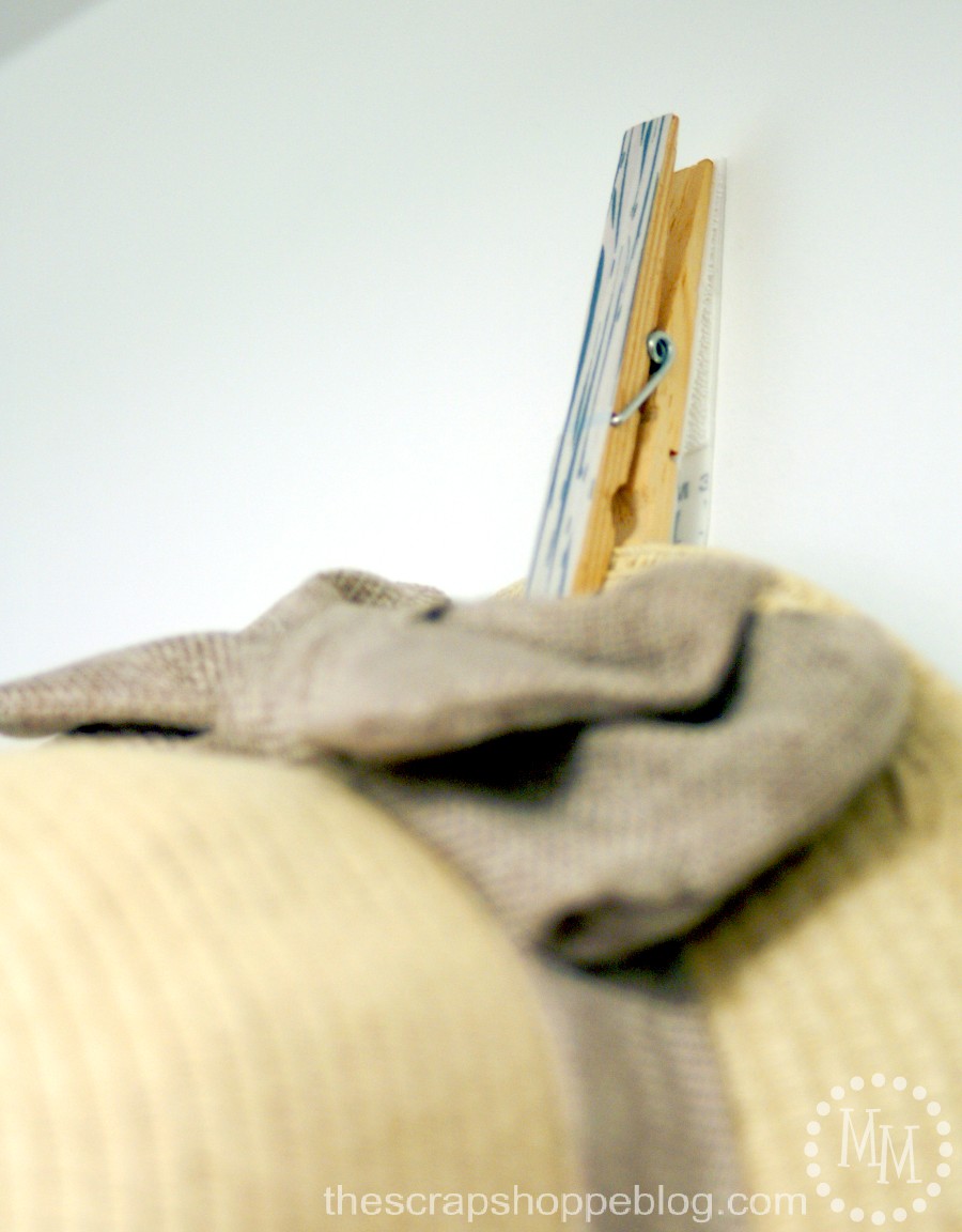 Apply the clothespins with the Command Strips to the walls. The reasoning for using the Velcro Strips is that, since the Velcro is so grippy (that's a word, right?), that the clothespin can be tilted if needed so that only the top part of the Velcro is connected allowing the brim of the hat not to be bent as it's held by the clothespin.