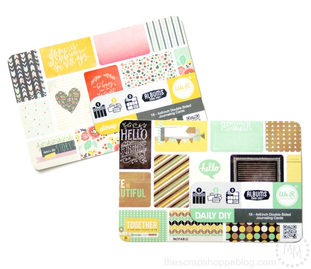 I found these 4×6 We R Memory Keepers journaling card packs at Target, but you can find them online as well. They are 18-piece pads of double-sided journaling cards – meaning, typically, one side of the card has a decorative picture, and the other side has space for journaling.