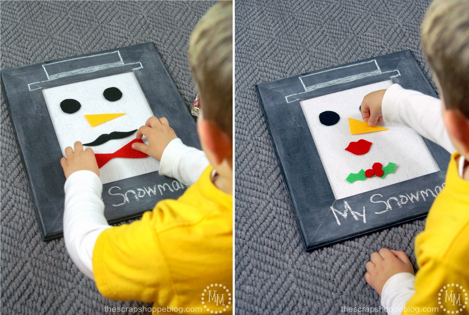 My little guy had a blast putting different faces on our snowman! I can already tell we are going to have to make even more facial features for him to play with.