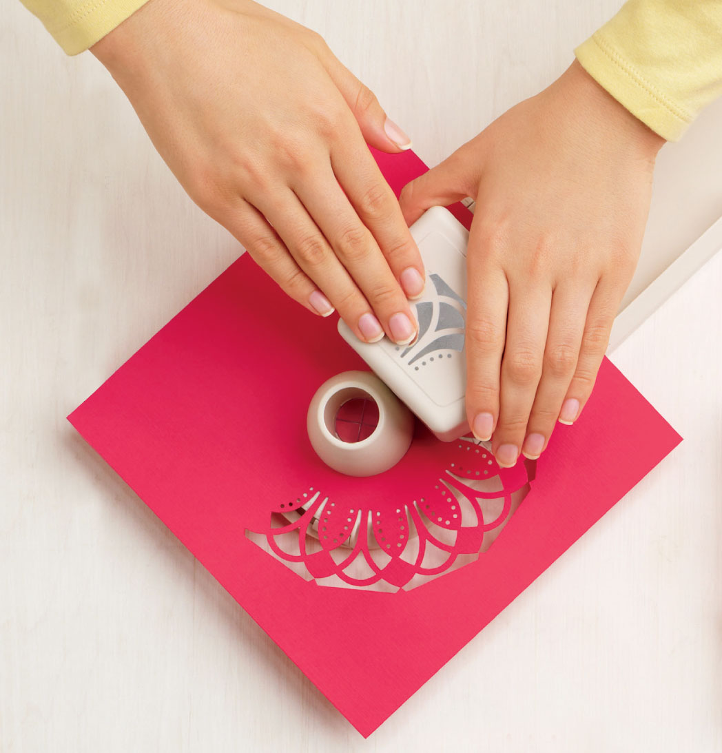 Its a brand NEW circle punch from Martha Stewart Crafts that can create the awesome doily shapes above!