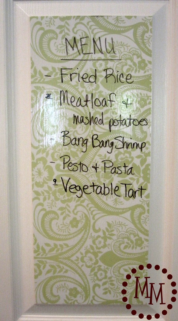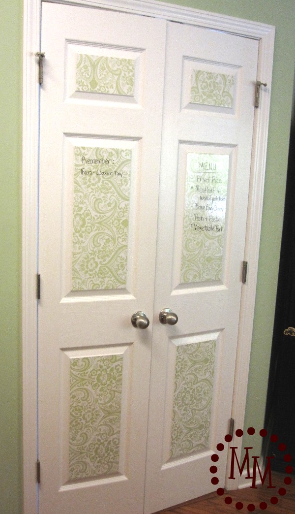 I also use the doors for reminders and other notes. And, best of all, when we have company they can be wiped clean and no one is the wiser to what my fabulous new door decor really is! 😉