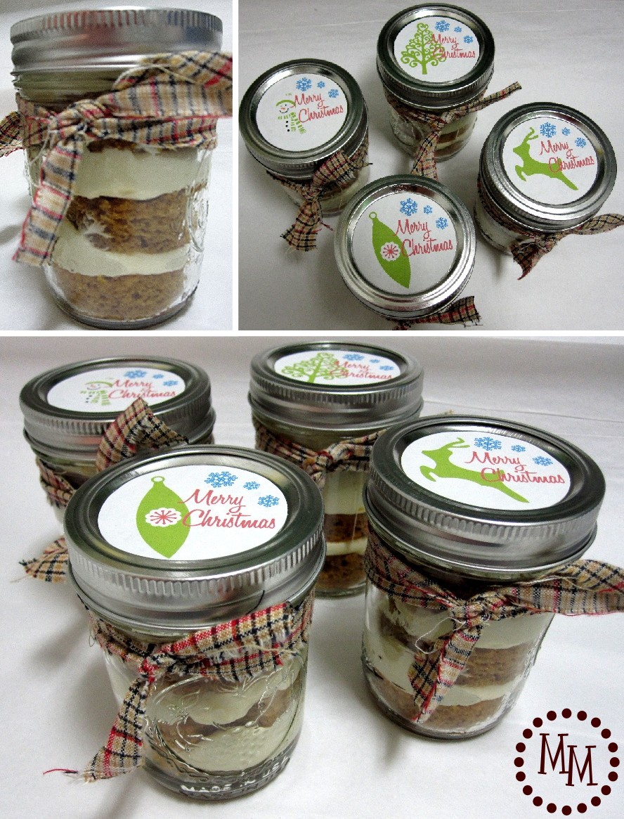 I've been itching to make these for a long time and thought they would be the perfect coworker gift! I used the Libby's pumpkin roll recipe and baked the cake then cut it up with a biscuit cutter to fit into the jars. I put layers of the cream cheese frosting between each layer. My coworkers didn't mind that their gifts had to be refrigerated! I used my Silhouette to make the tags on top of the jars.