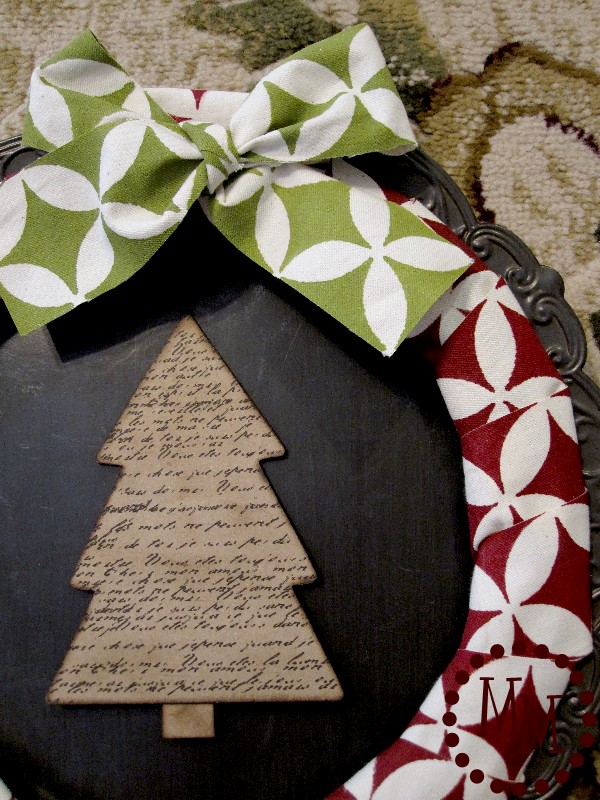 The bow is pinned to the wreath with a straight pin, so it can actually be removed if I want to decorate the wreath with something else.