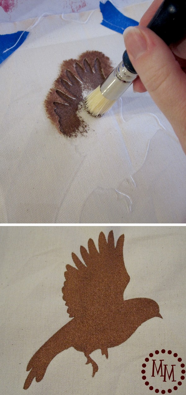 Included in my box of goodies was a small bird stencil. Since I was curious about using the stencil brush, I decided to try it on this little stencil. Look at how clean those lines are! Loving this brush…