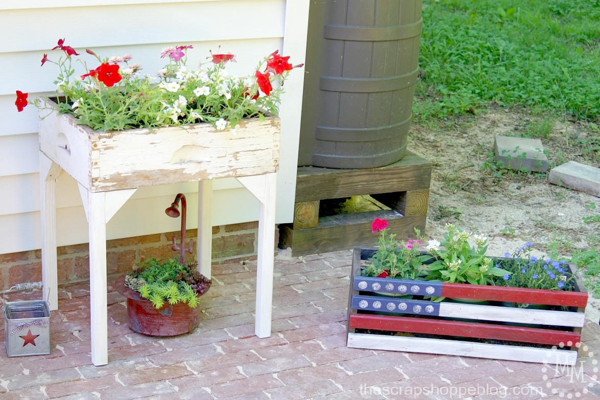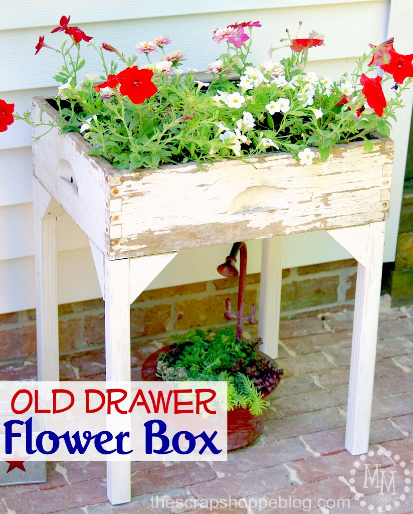 This old drawer flower box is one of my favorite upcycles and still sits on my patio and is doing fabulously.