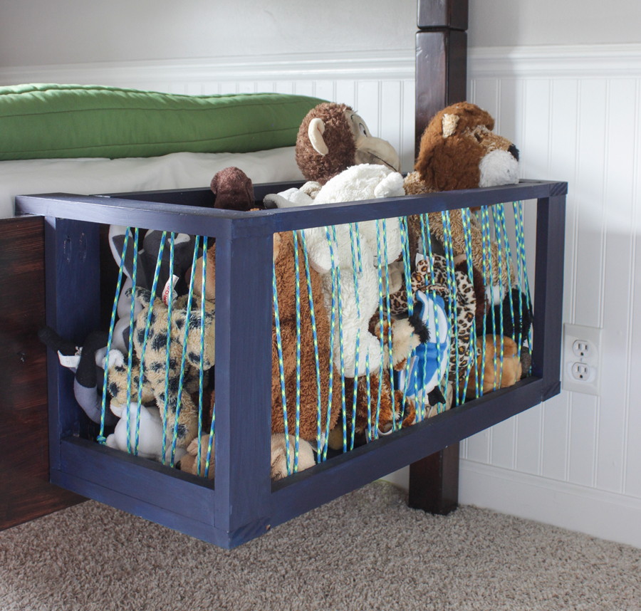 Build a Stuffed Animal Corral that hooks over the end of the bed to help keep them all in one space but within reach when they just need a little snuggle buddy at night.