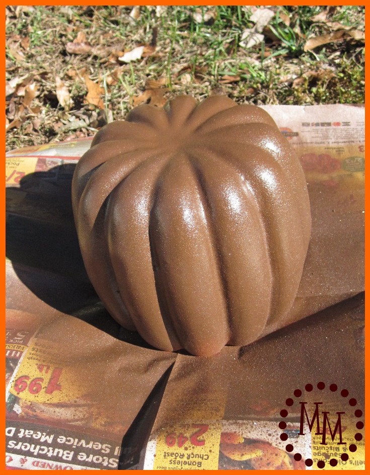 I gave my pumpkin a good two coats of paint which took no time at all because this stuff dries in 15 minutes. Seriously!