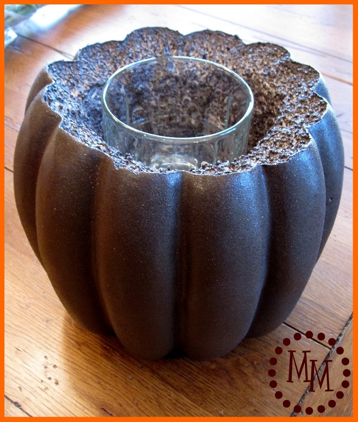 I wasn’t able to gouge out enough room for my original plastic cup, but one of my small glasses fit in the pumpkin quite nicely.