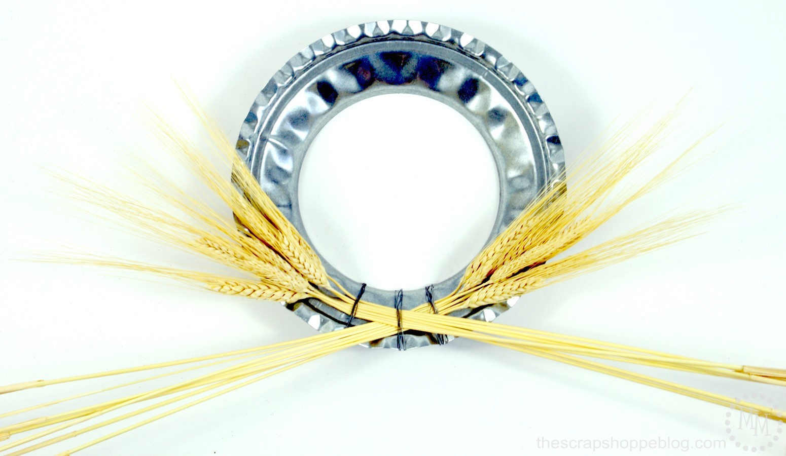 Select ~14 stalks of wheat to divide in half and lay cross ways over the bottom of the storm collar.