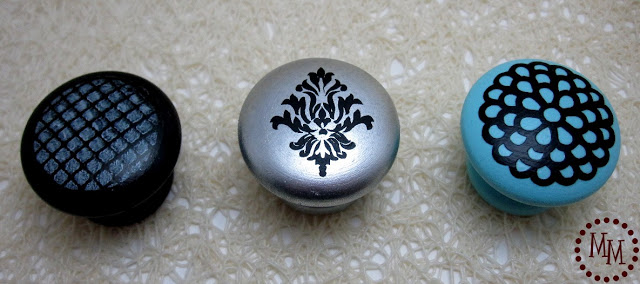 Dress up plain knobs with the use of scrap vinyl pieces.