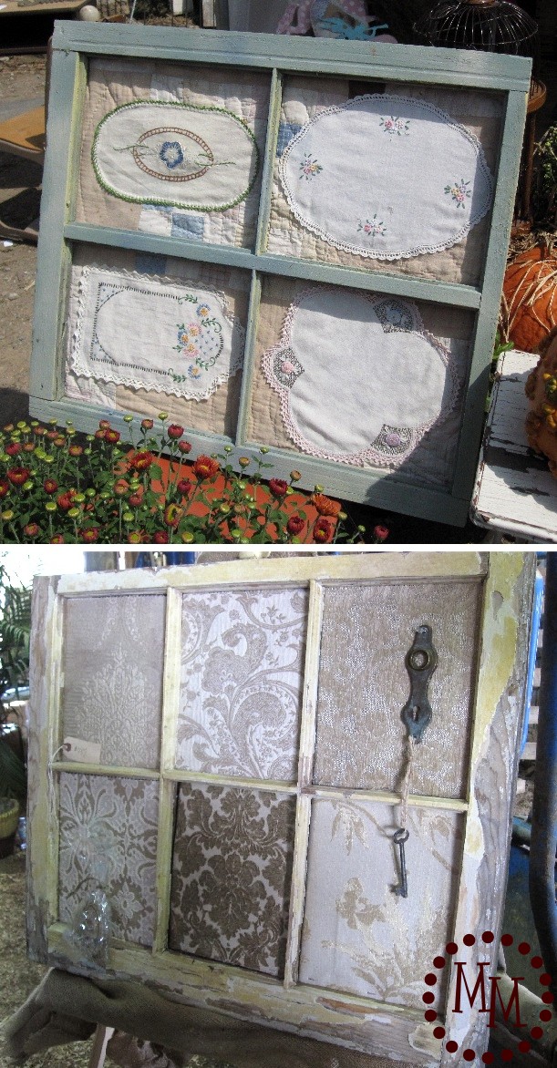 I love, love, love the makeovers on these old doors! The panels were removed and replaced with various items such as mirrored glass, fabric covered cork, chicken wire… so many uses!!
