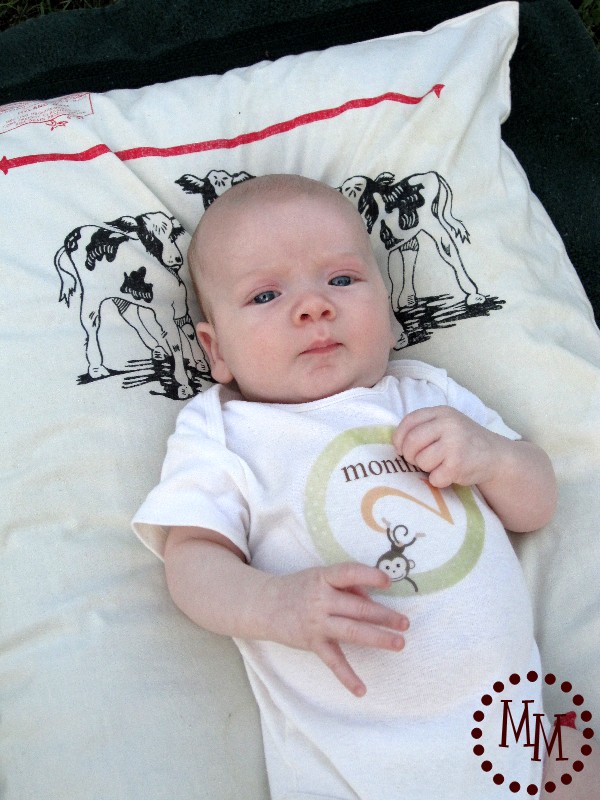 The feed grain sack pillow and the big red barn proved to be fantastic backdrops. 🙂