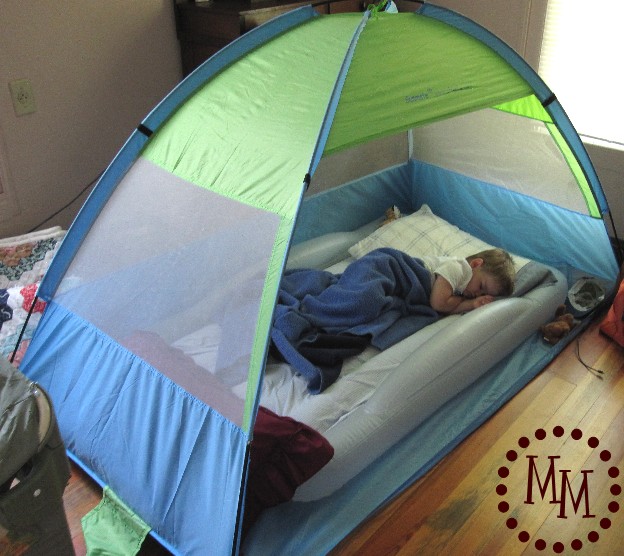 (Beach tent + blow up toddler bed = best.combo.ever!