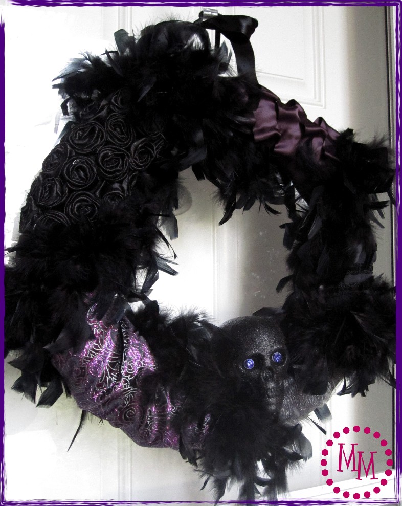 Spooky and chic - my kind of decor! I did a boa wreath last year (I cannot find it now) but I love the feathers and the purple.