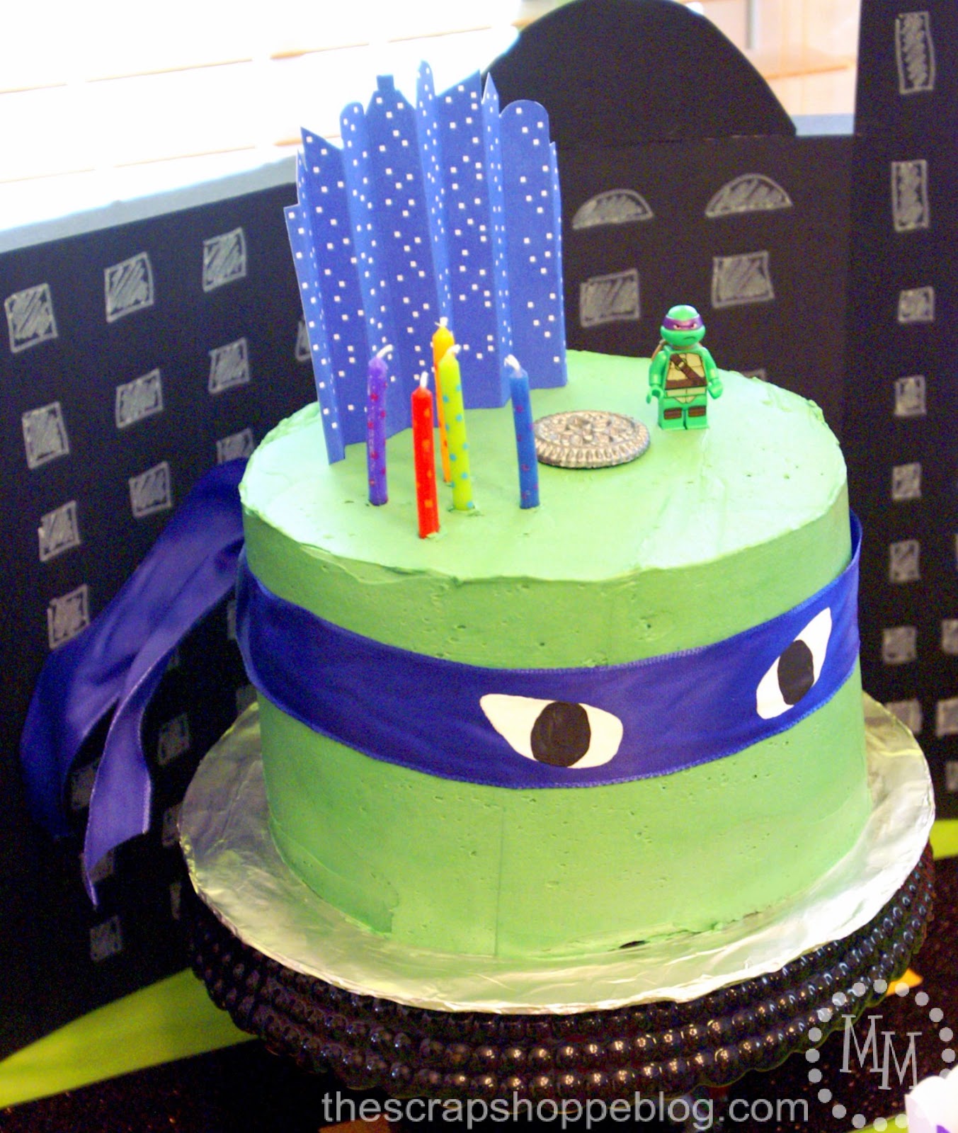 I found a fun idea for making the cake itself a Ninja Turtle head (you can see all of my party inspiration here).
