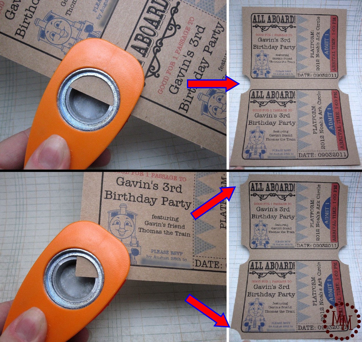 Once all of my invites were printed, I needed a couple of tools to make them look like tickets.