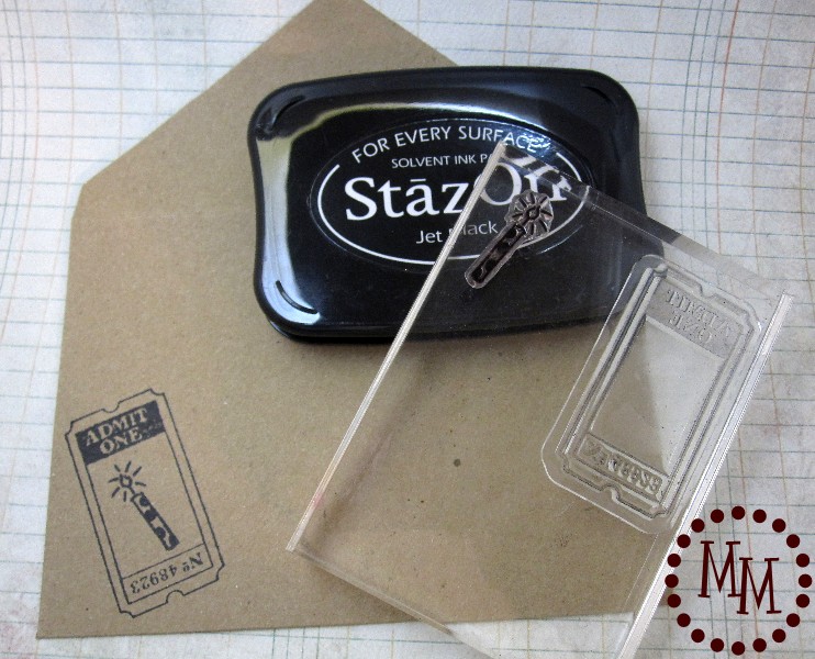 I like to dress up my envelopes, too, so I stamped a ticket and birthday candle on the front of the envelope.