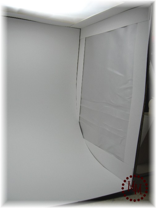 9. To get the look of the background going on to infinity you need a long rectangular piece of white cardstock. Cut it the width of your box and twice as long.