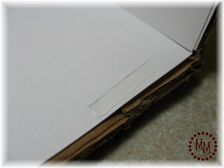 7. Continue to cover all of the edges of the exposed cardboard with the white cardstock.