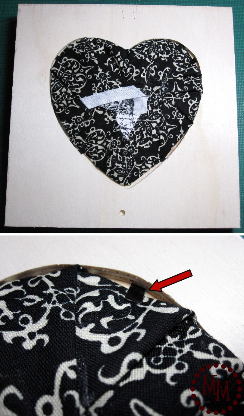 5-7. Slowly gather the fabric around the back of the heart and glue it into place.