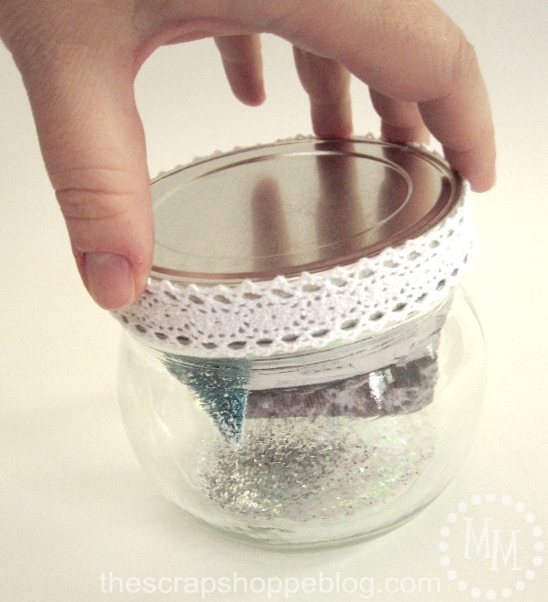 Glue the lace around the edge of the jar lid.